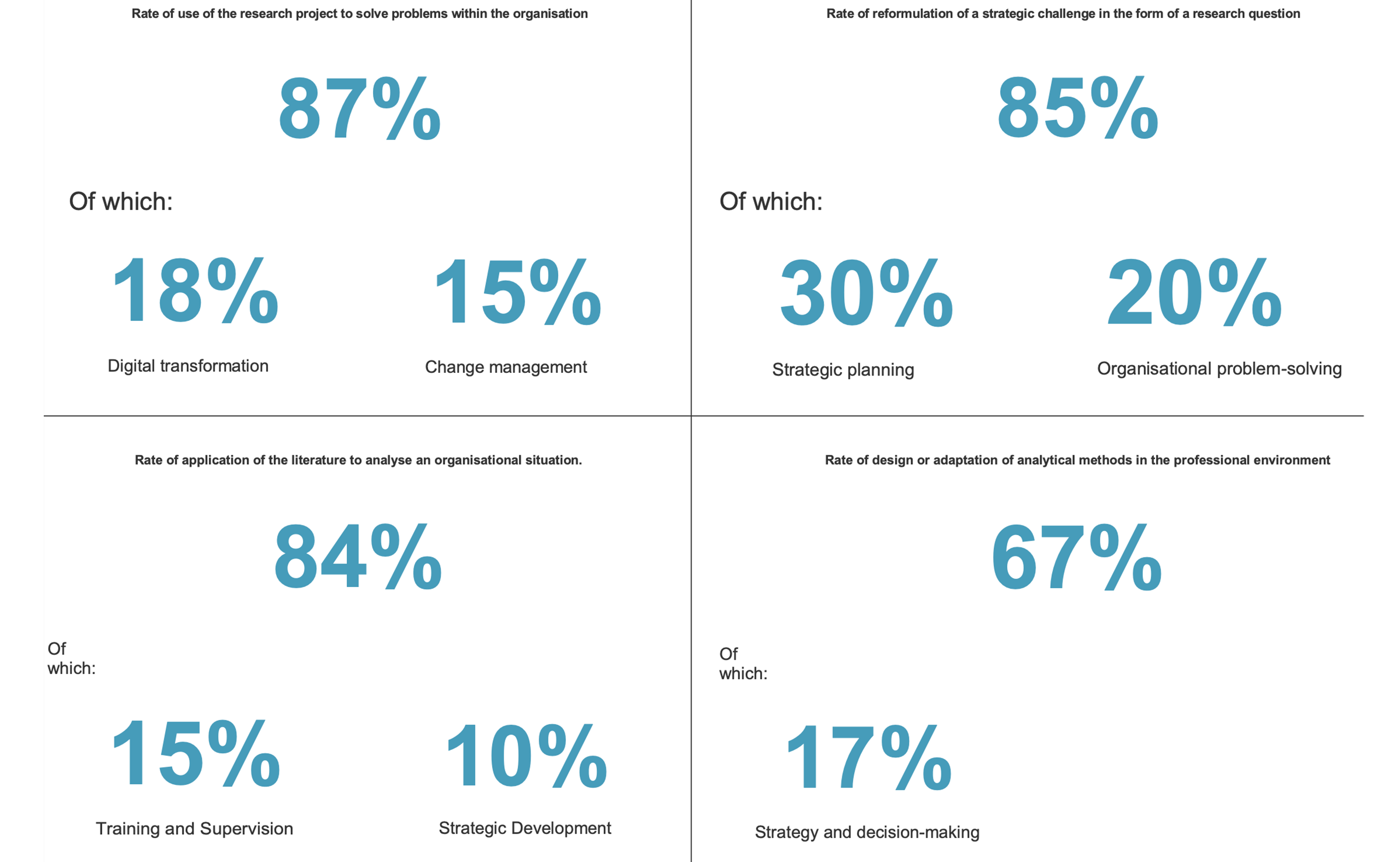 - 85% of graduates have reformulated a strategic issue as a research question.